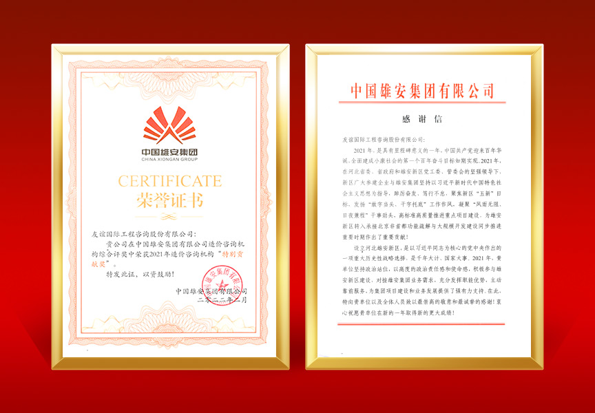中國雄安集團有限公司優秀造價咨詢機構獎、特殊貢獻獎